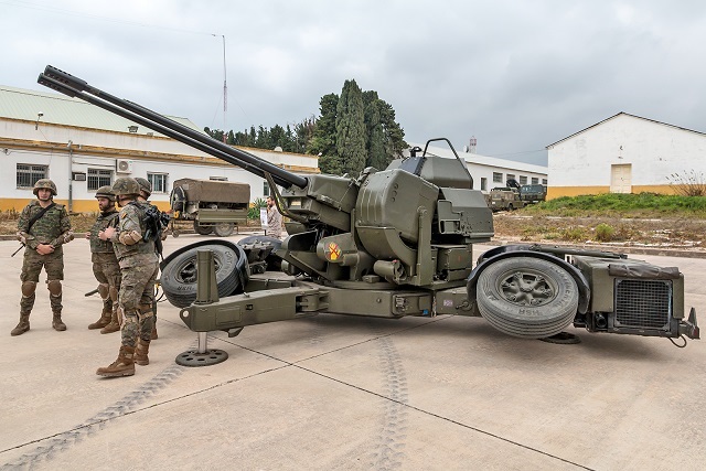 La última e eficaz burbuja de defensa aérea la aseguran los cañones Oerlikon-Contraves de 35 mm del MAAA (Mando de Artillería Antiaérea) del ET.