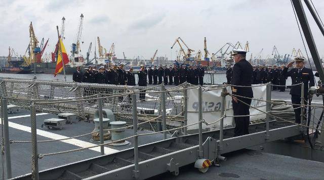 La fragata “Cristóbal Colón” ha pasado el testigo a la 'Méndez Núñez' como buque de mando de la Agrupación Naval Permanente 2 de la OTAN (SNMG-2) en un acto celebrado en el puerto de Constanza, en Rumanía. El evento estuvo presidido por el comandante de la Agrupación, contralmirante Manuel Aguirre Aldereguía, que ejerce el mando táctico de las unidades a bordo del buque de mando o, como se denomina en la Alianza, flagship.