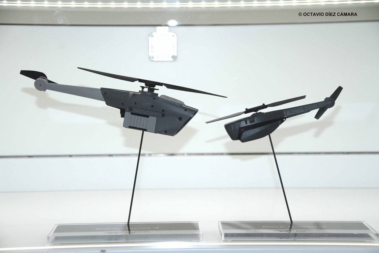A la izquierda vemos un Black Hornet 4 que es poco mayor que el Black Hornet 3 que se aprecia a la derecha. . (Octavio Díez Cámara)