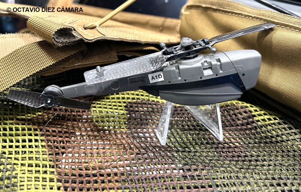 En concreto, hemos podido ver sus sistemas Black Hornet 3, un pequeño helicóptero del que se llevan varios, con capacidad diurna o nocturna, en un anclaje/soporte que se suele situar en el chaleco porta equipo del piloto. Ese personal especializado del Grupo de Acción Rápida dispone de una pantalla de control para controlar su vuelo y observar las imágenes que proceden de sus sensores para, en tiempo real, aprovecharlas de forma diligente y efectiva.