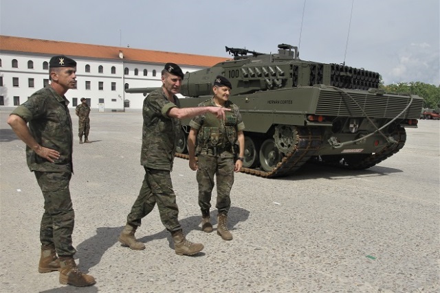 Resulta muy curioso ver desfilando en “El Goloso”, sede de la Brigada “Guadarrama” XII, los carros de combate Leopardo 2E y los VCI (Vehículos de Combate de Infantería) Pizarro de la Brigada “Extremadura” XI, dado que la mayor parte de los medios de la unidad anfitriona están actualmente desplegados en el macro ejercicio Valiant Lynx 2018. (Julio Maíz Sanz)