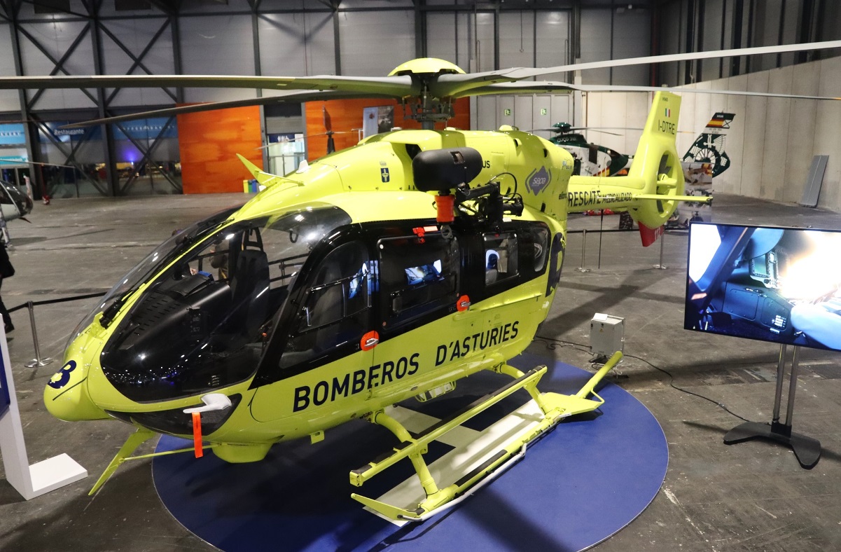 Helicóptero H145 operado por los Bomberos de Asturias, expuesto en la edición de European Rotors de 2023. (foto Julio Maíz)
