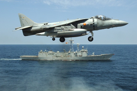 Por entonces se había confirmado la baja de cuatro de los dieciséis aviones de despegue vertical Harrier con que cuenta la Armada al no haber fondos para su estandarización a la versión AV-8B Harrier II Plus. Suponiendo que las condiciones económicas y presupuestarias lo permitan, no será hasta 2034 cuando pueda entrar en servicio un reemplazo para este avión, siendo por ahora la única opción viable (en lo técnico, que no en lo económico) el F-35B de la estadounidense Lockheed Martin. De hecho los otros operadores junto a España del Harrier han elegido este avión para reemplazarlo a bordo de sus portaaviones y buques de asalto anfibio.