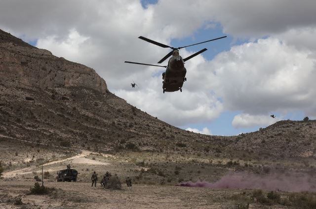 A continuación, se ha trasladado al embalse de Tibi, desde dónde ha podido presenciar un lanzamiento de embarcaciones desde el helicóptero ‘Chinook’ H-17 y el trabajo en el agua de especialistas en buceo. Para terminar la demostración, se ha escenificado un tema táctico de fuego real en el campo de tiro y de maniobras de Agost.