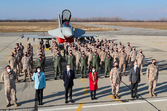 Los cuatro Eurofighter españoles, pertenecientes al Ala 14 del Ejército del Aire y configurados para misiones de policía aérea, aterrizaron el pasado 11 de febrero en Bulgaria procedentes de la Base Aérea de Albacete. Está previsto que su misión finalice el próximo 31 de marzo, cuando les relevarán cuatro aviones holandeses.