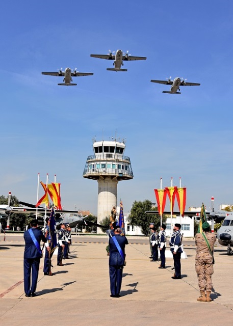 ·Pasada en formación de tres T12B “Aviocar” durante el homenaje a los caídos. (foto: Base Aérea de Alcantarilla).