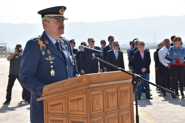 ·El coronel Francisco Javier Fernández Fernández durante su discurso del acto. (foto: Base Aérea de Alcantarilla).