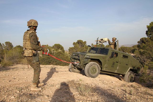 ·Se realizan prácticas como las que habilitan al personal para sacar sus vehículos VAMTAC ST5 de situaciones comprometidas. (Octavio Díez Cámara)