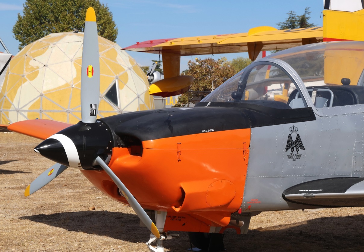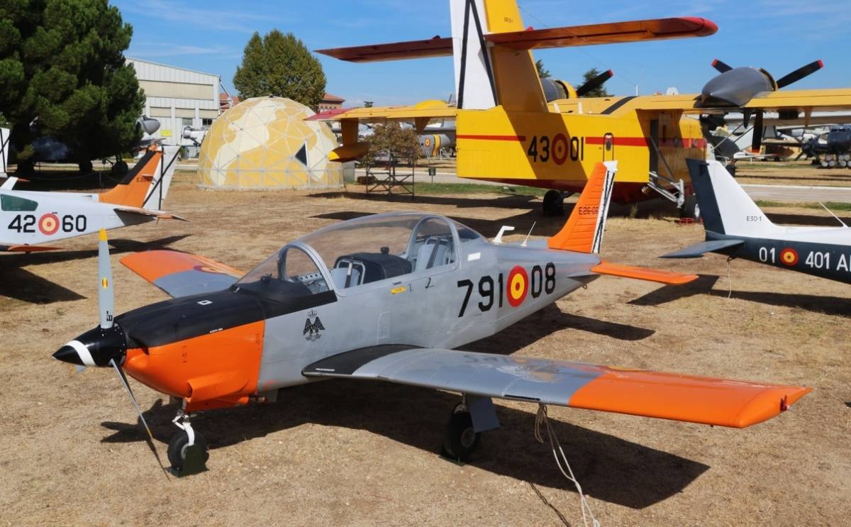 En cuanto al ejemplar ahora expuesto, la E.26-08 (número de construcción 126) fue recibida por la AGA el 22 de enero de 1988 con el indicativo 79-55, que en 2020 sería sustituido por el 791-08. Fue retirada del servicio el 6 de junio de 2023 y almacenada junto con otros aparatos en la Maestranza Aérea de Sevilla (MAESE) hasta su traslado al Museo de Aeronáutica y Astronáutica en septiembre del mismo año. Tras su montaje en el hangar 6, ha pasado a exhibirse junto a otros aviones de instrucción, fácilmente reconocibles por sus detalles en rojo en los estabilizadores, puntas de las alas y el carenado del motor. (Julio Maíz)