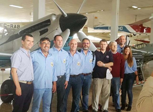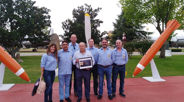·Los promotores delante del Buchón que hay expuesto en el Museo del Aire (ACUBE)