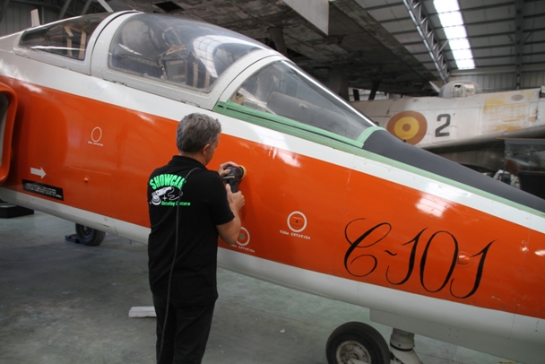 ·La empresa Showcar especializada en pulimentar la pintura de automóviles de las más altas gamas (Ferrari, Maserati, etc), está realizando trabajos en varios de los aviones del Museo del aire, como en este prototipo del C-101.