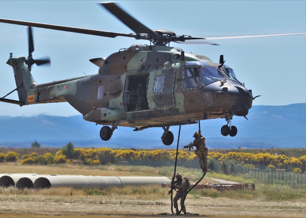 Personal del MOE desciende de un NH90, durante un reciente simulacro. (Julo Maíz)
