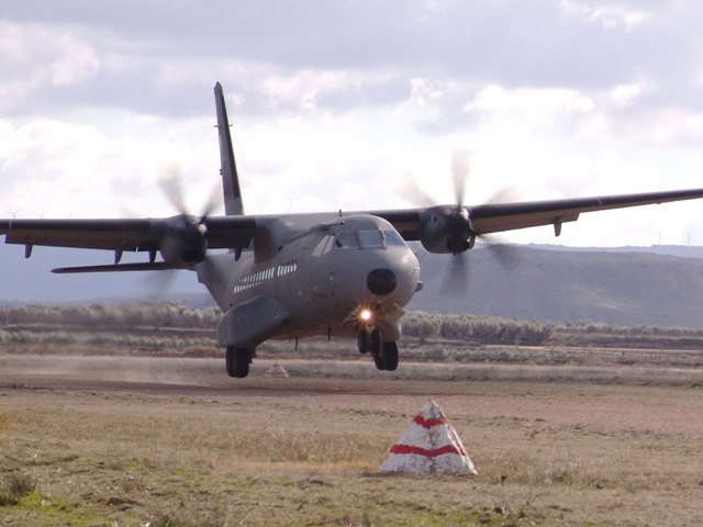 Fotografía: La aeronave C-295 (T-21) en el momento de una aproximación a tierra.