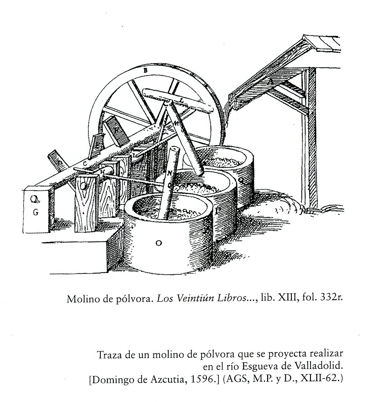 Batán para pólvora (“Los veintiún libros de los ingenios y máquinas” de Juanelo)