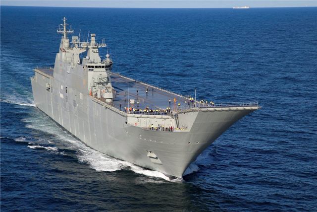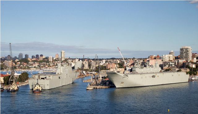 Recordemos que tanto el Canberra como el Adelaide están basados en el Buque de Proyección Estratégica de la Armada española, diseñado por el astillero Navantia, que también ha vendido el mismo concepto a la Marina de Turquía. Son dos buques anfibios del tipo LHD (Landing Helicopter Dock) dotados de cubierta de vuelo y dique inundable. Son los mayores buques con los que ha contado nunca la Royal Australian Navy, con un desplazamiento de 27.500 toneladas, una eslora de 230 metros, una manga de 32 y un puntal de 27 metros, sus dimensiones resultan espectaculares. Puede transportar 1.100 personas, 100 vehículos blindados y 12 helicópteros. La cubierta de vuelo tiene seis spots para operar con helicópteros medios, que en el caso de Australia son los MRH-90 Taipan o el MH-60R Seahawk. En cuatro de los spots pueden operar también helicópteros pesados como el CH-47 Chinook también en servicio en Australia.En Australia estos buques serán empleados para operaciones anfibias aunque también podrán usarse para asistencia humanitaria o apoyo tras desastres naturales. (Jose Mª Navarro Garcia)