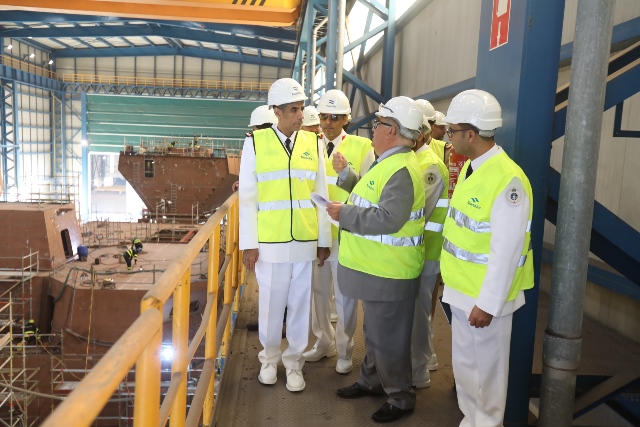 El director del Astillero Bahía de Cádiz de Navantia, Javier Herrador, ha dado la bienvenida a los asistentes. El acto oficial de puesta de quilla se ha celebrado junto a la grada en la que se levantará la primera de las corbetas y ha contado con la presencia del Contralmirante H.E. Faleh Abdulrahman Alfaleh, Subcomandante de la Flota Occidental de la Marina saudí; así como de Gonzalo Mateo, director de Operaciones y Negocios de Navantia.