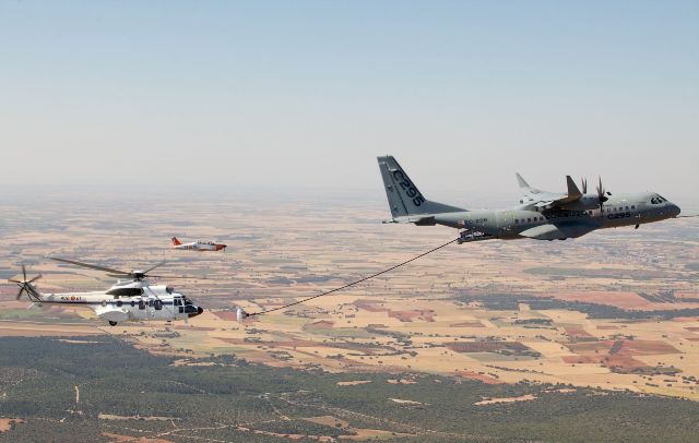 Así nos lo confirman fuentes del fabricante, Airbus Helicopters, después de que se difundiera el rumor de que los helicópteros del Ministerio de Defensa español contaban con esa capacidad. El origen de este rumor se encuentra en la reciente prueba del sistema de reabastecimiento en vuelo instalado sobre un C295. La pértiga de reabastecimiento para helicópteros permite aumentar el alcance y duración de las misiones de ahí que resulte un equipo idóneo para helicópteros que operan dando apoyo a unidades de operaciones especiales o para helicópteros de búsqueda y rescate (SAR) o búsqueda y rescate de combate (CSAR).