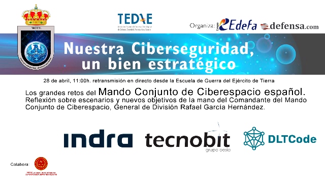 El próximo miércoles, 28 de abril, Grupo Edefa organiza un evento en directo, retransmitido desde la Escuela de Guerra del Ejército de Tierra, que abordará la Ciberseguridad como pieza clave para la Defensa de España desde la visión del Mando Conjunto de Ciberespacio. El Comandante del Mando Conjunto del Ciberespacio, General de División Rafael Garcia Hernandez, expondrá las misiones, estructura y retos del Mando, una visión que complementará un experto de la Fuerza de Operaciones en el Ciberespacio, que analizará capacidades, defensa, explotación y respuesta, y un representante de la Jefatura de Sistemas de Ciberdefensa. El presidente de TEDAE, Ricardo Martí Fluxa, introducirá las aportaciones y capacidad de respuesta de la industria de TEDAE a los retos de la ciberseguridad nacional.