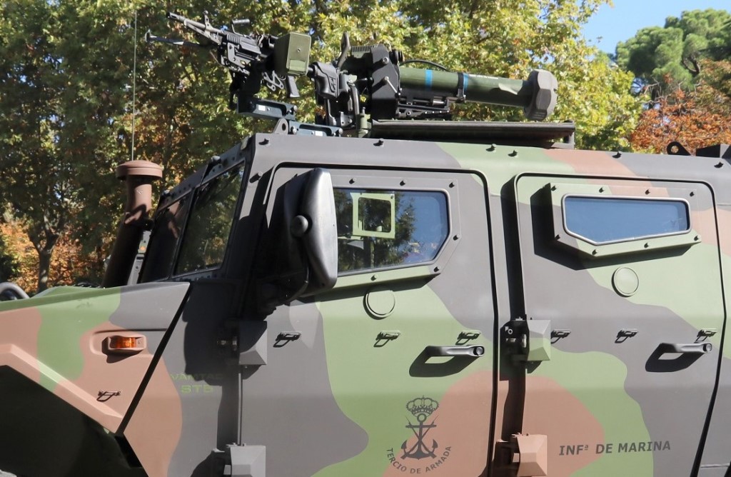 El VAMTAC ST5 que vimos montando este arma tenía el rol de cazacarros, ya que estaba equipada con un lanzador Rafael Spike, y en el mismo anillo portaba la Minimi de 7,62 mm, que tiene la función de autodefensa. La ametralladora Minimi fue introducida en los años setenta del pasado siglo y, en su continua evolución, llegó la variante Mk3 en 2013.