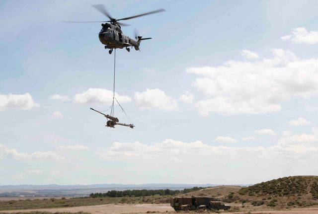 1- Uno de los AS332 del BHELMA IV transportando un obús Light Gun. Foto Brigada “Aragón” I.