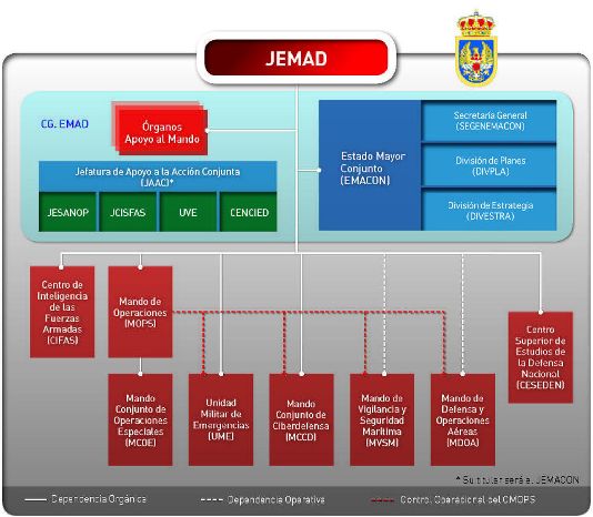 Estos y otros cambios se han producido en ocasiones a mayor velocidad de la que la organización puede asimilar y por ello se ha estimado es necesario realizar continuos ajustes que adapten las estructuras buscando la mayor eficacia. La nueva estructura del EMAD que se implanta ahora está más alineada con las competencias principales del jefe del Estado Mayor de la Defensa (JEMAD) al tiempo que se eliminan redundancias, en beneficio de una mayor velocidad de mando, eficacia y eficiencia de esta organización. Conceptos orgánicos derivados del “mando por misión” (misión command), “control por veto”, “autorización de relaciones directas” a los mandos subordinados con los correspondientes en otras estructuras, establecimiento de “relaciones horizontales” y el desarrollo de “procesos de trabajo”, se considera deben ser elementos catalizadores en la implantación de la nueva estructura orgánica.