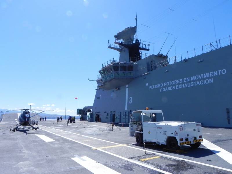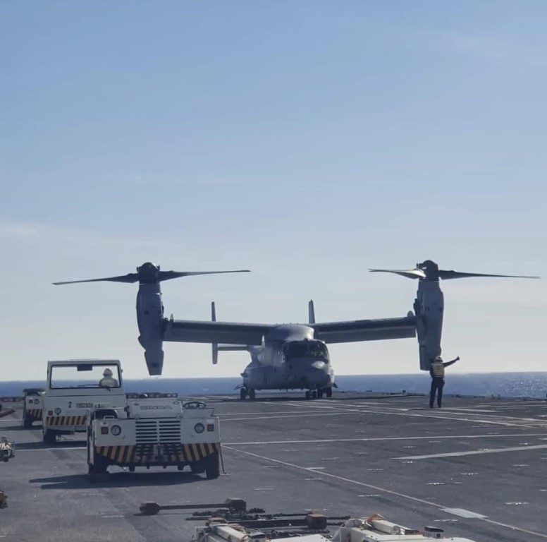 Uno de los GPU operando en el buque Juan Carlos I junto a un convertiplano Osprey estadounidense