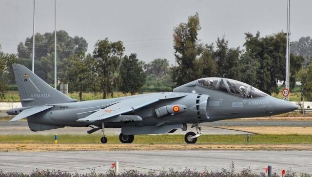 El avión de combate biplaza Boeing TAV-8B Harrier II recientemente incorporado a la Armada española ya está pintado con los colores estándares de la Novena Escuadrilla de la Flotilla de Aeronaves (FLOAN), que tiene sede en la base aeronaval de Rota (Cádiz). El aparato ha sido fotografiado portando su nuevo esquema en el cercano aeropuerto de San Pablo (Sevilla), donde muy probablemente ha sido pintado en las instalaciones Manteinance, Repair and Overhaul (MRO) de la empresa Airbus Defence & Space.