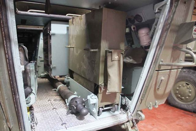 Igualmente se ha dotado al portamorteros de una santa bárbara diseñada y fabricada a medida, en la que se pueden transportar 35 proyectiles para la pieza, lo que demuestra la gran eficacia de los diferentes talleres del PCMASA 1, que cuentan con una alta experiencia en el refuerzo y modificaciones del BMR.
