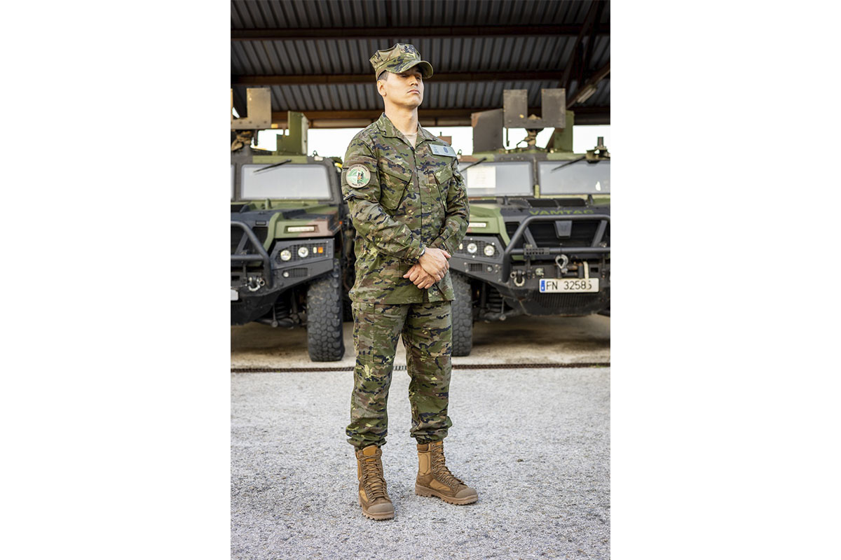 Respecto a la uniformidad táctica se compone de: camiseta UBAC (Under Body Armour Combat) y pantalón táctico multibolsillos ignífugos en pixelado boscoso. Las mangas de la camiseta UBAC usan el mismo tejido que el pantalón, mientras que el cuerpo es un tejido de punto ignífugo y confortable.