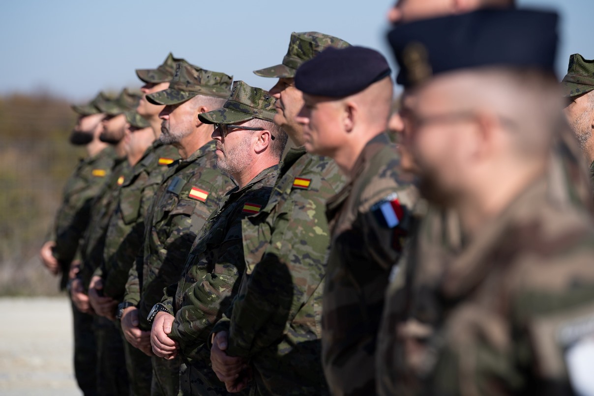 Varios miembros del TEAR, formados junto a militares franceses, con el nuevo uniforme boscoso en Rumania. (foto Estados Mayor de la Defensa)