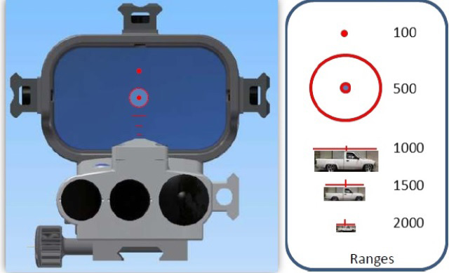 El display transparente presenta un punto rojo o verde calibrado a distintas distancias de disparo según la munición empleada, puede ser empleado junto a un visor de aumento. El usuario del arma solo tiene que apuntar el arma y hacer coincidir el puntero rojo con el objetivo según la escala con que cuenta, como se aprecia en el vídeo que acompaña este texto.