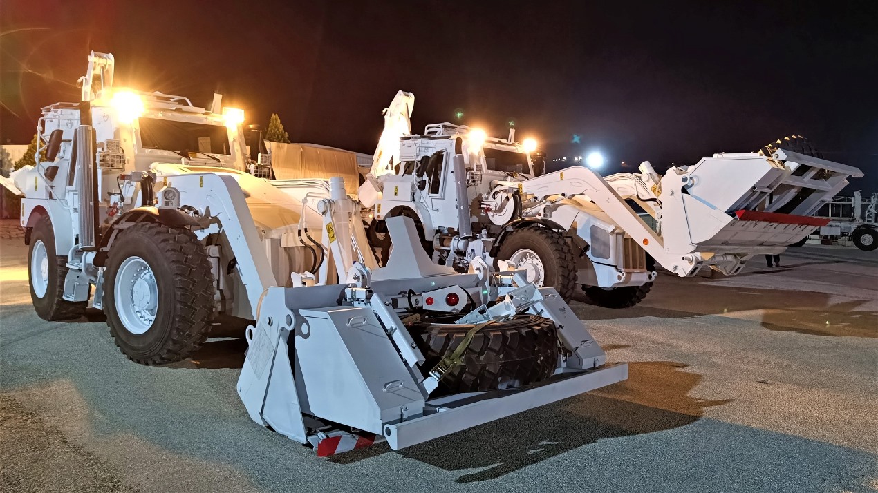 Dos excavadoras protegidas JCB a su llegada a Líbano (Estado Mayor de la Defensa)