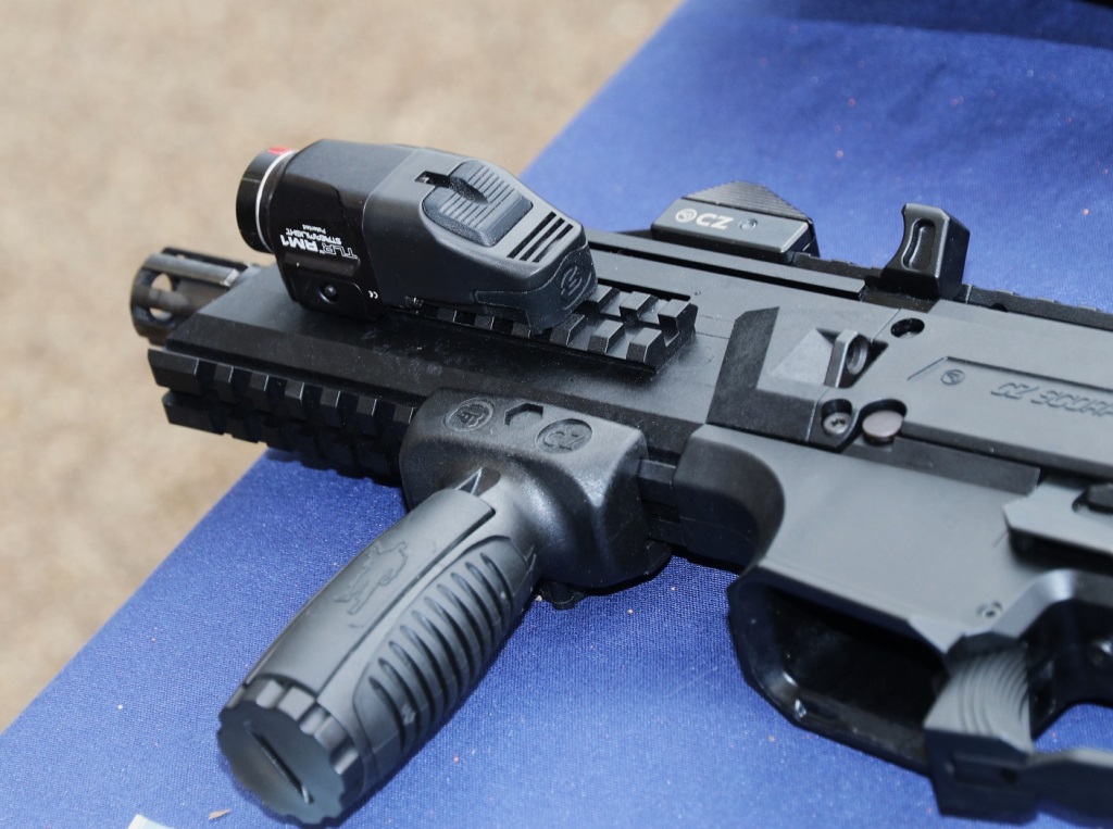 Parte delantera del arma de la firma CZ, se aprecia la linterna Streamlight RM1. (foto Julio Maíz Gutiérrez)