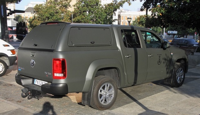·Vista trasera del “Amarok” donde se aprecia que lleva en la parte de la caja un carrozado como los de la UME. (foto: Julio Maíz/defensa.com)