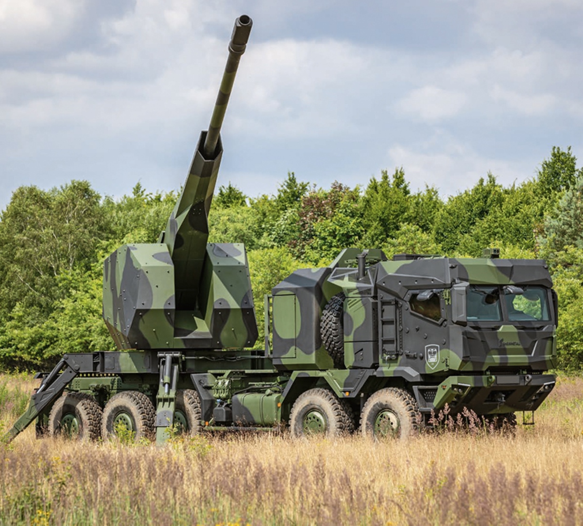 El obús autopropulsado K9 Thunder de la surcoreana Hanwha Defense es uno de los productos más exitosos del segmento cadenas, pero también se está adaptando a plataforma de ruedas 8x8 según las diversas presentaciones que ha hecho el fabricante estos años.