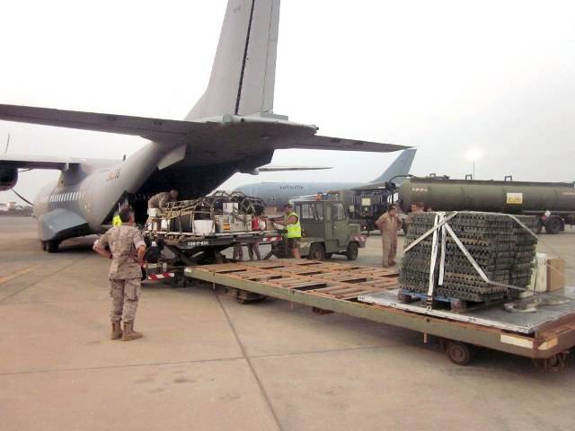 Fotografía: La llegada en 2013 a Dakar del T-21 con material para el destacamento Marfil (Ministerio de Defensa)