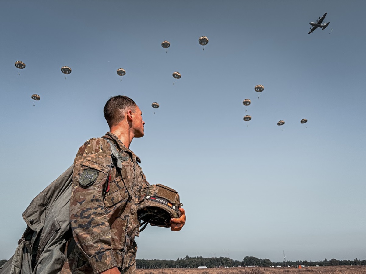 Decenas de efectivos de la Brigada “Almogávares” nº VI de Paracaidistas (BRIPAC) del Ejército de Tierra han participado en un lanzamiento de paracaidistas masivo en las cercanías Arnhem (Países Bajos), que recuerda el 80 aniversario de la fallida operación aliada Market Garden en septiembre de 1944.