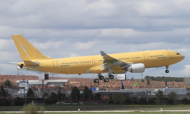 Este Airbus A330, que tiene el número de construcción 1516, tras salir de la cadena de montaje de Toulouse-Blagnac (Francia) en abril de 2014, volaba a la citada planta de Barajas, la única junto a la instalación de ADS de Getafe que realiza la transformación a MRTT.