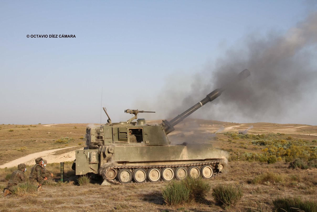 Los recientes acuerdos permitirán reemplazar los actuales obuses autopropulsados M109A5 con piezas de ruedas y cadenas que, con suerte, llegarían a las unidades en dos o tres años. (Octavio Díez Cámara).