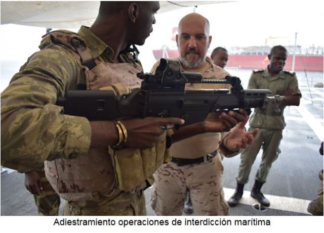 Además, la Armada participa en el fortalecimiento de la seguridad marítima en otras regiones del mundo, y aprovecha sus despliegues en África para hacer presencia y estrechar relaciones con el mayor número posible de países. Mantiene una intensa actividad bajo el marco de la Seguridad Cooperativa en Mauritania, Senegal y Cabo Verde, y su acción en las costas africanas, coordinada con otros países occidentales, como Estados Unidos, Francia, Portugal y Dinamarca, se apoya en acuerdos con varios países de la zona. España enmarca sus actividades en el Golfo de Guinea dentro del ámbito de la UE, donde los Ministros de Defensa de España, Portugal, Francia y Dinamarca han acordado incrementar las iniciativas de seguridad marítima en la región.