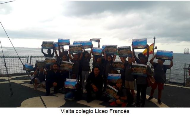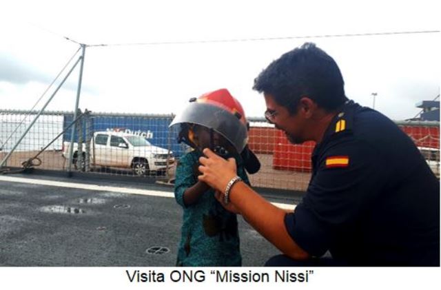 Finalmente, para cerrar la estancia en la ciudad gabonesa, durante la mañana del día 27, la dotación del “Atalaya” jugó un partido de Volley-Ball con personal de la Marina local y, por la tarde, recibió a bordo la visita del colegio Liceo Francés y la ONG “Mission Nissi”.