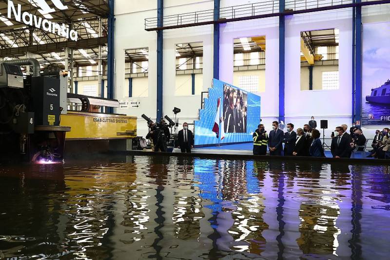 El presidente del Gobierno, Pedro Sánchez, ha presidido en los astilleros de Navantia, en la localidad gallega de Ferrol, A Coruña, el acto con el que se ha iniciado la construcción de la primera fragata F-110.