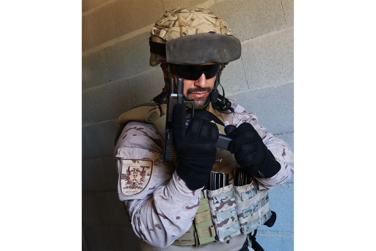 Durante una reciente visita de defensa.com a las instalaciones de la BRIMAR/TEAR en San Fernando (Cádiz), pudimos asistir a uno de los adiestramientos en el polígono de entrenamiento en zona urbana o Close Quarters Battle (CQB), tipo de combate en el que es especialmente útil la pistola, usando ya la nueva G45.