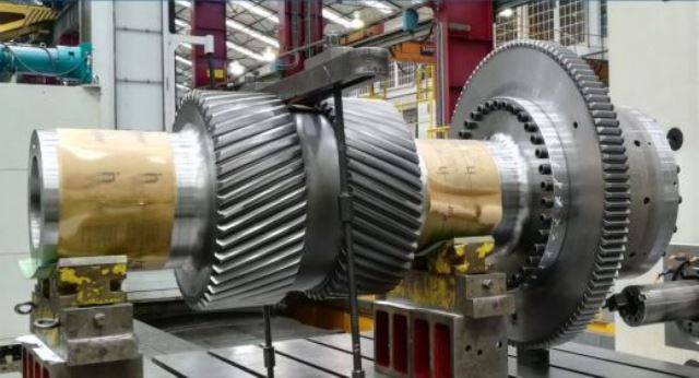 Fotografía: Piñón de engranaje de una caja reductora fabricada en la planta de Turbinas de Navantia. (foto Navantia)
