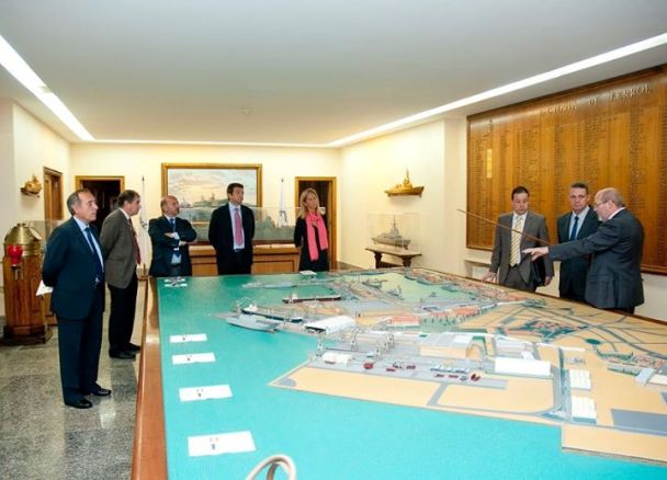 La delegación vistió la fragata F-105 “Cristóbal Colón” de la Armada española, la última de la serie F-100 y que incluye modificaciones de diseño respecto a las primeras cuatro unidades. La visita contó con la presencia del Contralmirante Antonio Pintos, Comandante del Grupo de Acción Naval y el Comandante del buque, el Capitán de Fragata Enrique Núñez de Prado. Posteriormente se dirigieron a la Oficina de la Inspección de Construcciones (ICO) de la Armada en Ferrol donde se dirigen las inspecciones de las construcciones para la Armada y se vela por la calidad de esas construcciones y modernizaciones.
