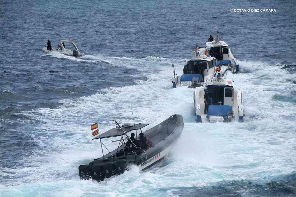 Las autoridades y los allí concentrados pudimos observar una simulación en la que una lancha rápida que simulaba actuar a modo de las que actúan para introducir droga a nuestro país era interceptada. Pese a que intentó zafarse de sus perseguidores, aprovechando la potencia de sus motores, la agilidad y profesionalidad de las tripulaciones de las tres lanchas de mayor calado de la Policía Marítima de los Mossos d’Esquadra que actuaron en su captura fue diligente y la detuvieron. Desde el aire, la acción estuvo cubierta por uno de los H135.