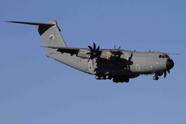 El M54-01, al que hemos fotografiado, aterrizaba en el aeródromo de Getafe (Madrid), junto a la planta de Airbus del mismo nombre, y habría vuelto a España para someterse al retrofit de sus propulsores, que solucionaría el problema detectado en las cajas de reductoras, o Engine Propeller Gearbox (PGB), que construye la empresa italiana Avio Aero, actualmente filial de la norteamericana General Electrics, destinadas al programa multinacional del A400M.