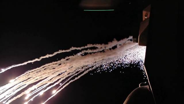 Fotografia: Primer lanzamiento de bengalas por parte de un NH90 del BHELMA III. (foto Ejército de Tierra)