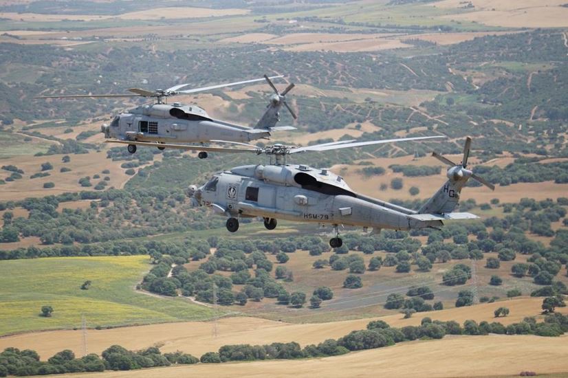 Formación mixta de un MH-60R de la US Navy (primer plano) y un SH-60B de la Armada española. (Foto Ala 14)