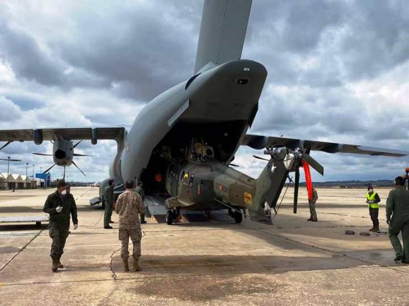 Uno de los A400M del Ejército del Aire ha trasladado por primera vez un helicóptero a un escenario de operaciones, ha sido un AS532 Cougar de la Aviación del Ejército de Tierra (ET), que ha volado en bodega de España a Irak.